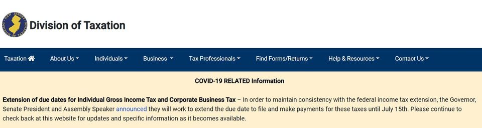 NJ has extended the tax filing deadline to July 15th